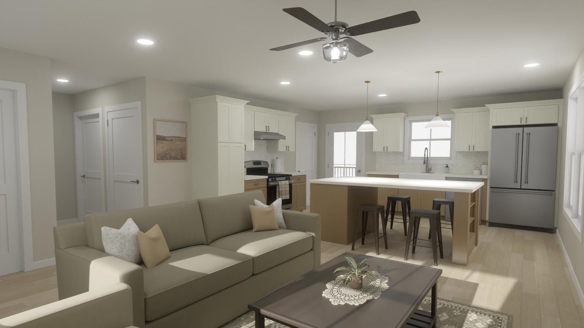 The Moonstone Floor Plan combines efficient design with future-ready flexibility to support your homeownership journey. With 1 bedroom, 1.5 bathrooms, and 990 square feet of thoughtfully planned living space, this home is ideal as a starter home, downsizing option, or right-sized custom build with room to grow.