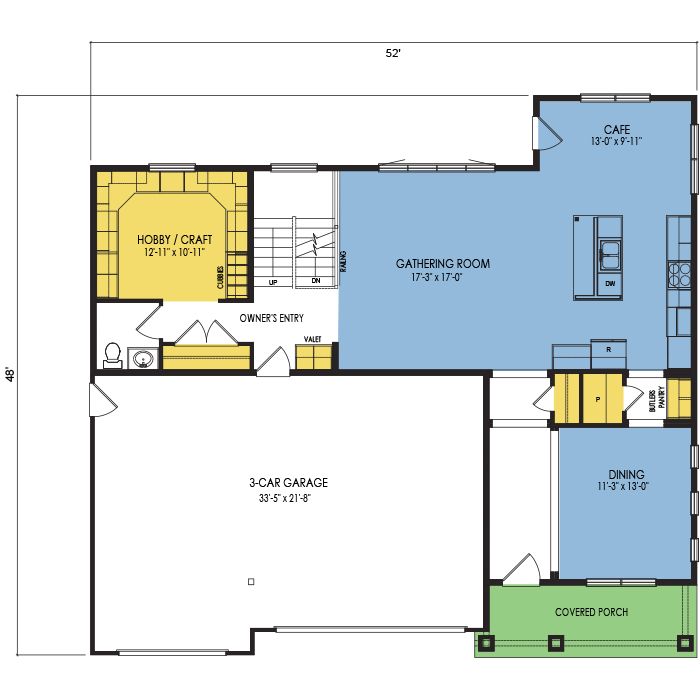 A part of our Family Series, the Zion 2-story floor plan features 3 bedrooms, 2.5 bathrooms, and a 3 car garage, with a footprint of 52x48 feet and 2767 total square feet of living space. Floor Plan #FM289